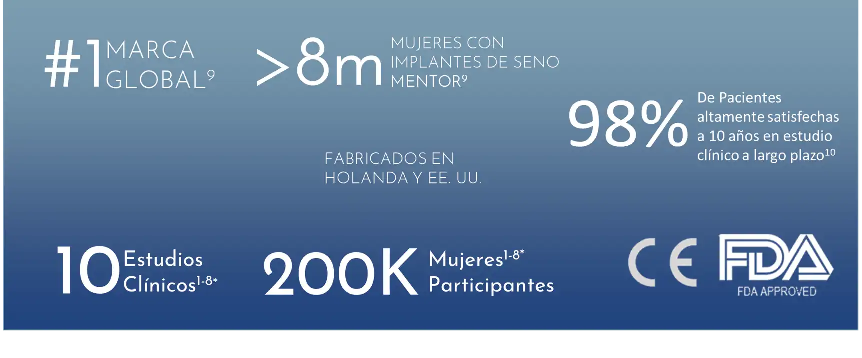 MENTOR™ es una marca líder mundial en implantes mamarios, reconocida por su compromiso con la calidad, la innovación y la seguridad. Con más de 30 años de experiencia, ofrece productos respaldados por rigurosos estudios clínicos, altos estándares de fabricación y aprobaciones internacionales como la FDA de Estados Unidos.